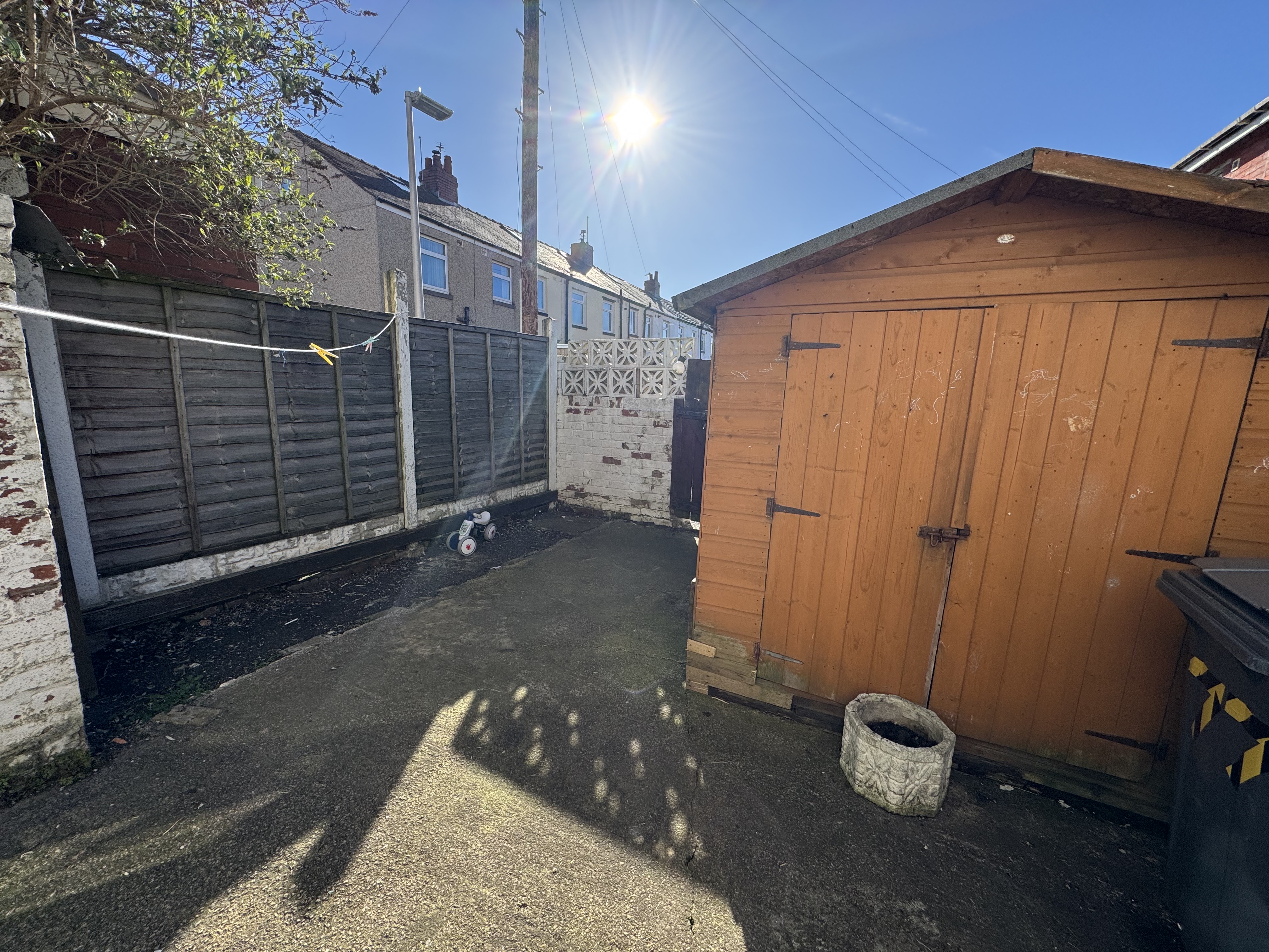 Enclosed garden area to rear with decked patio and shed.