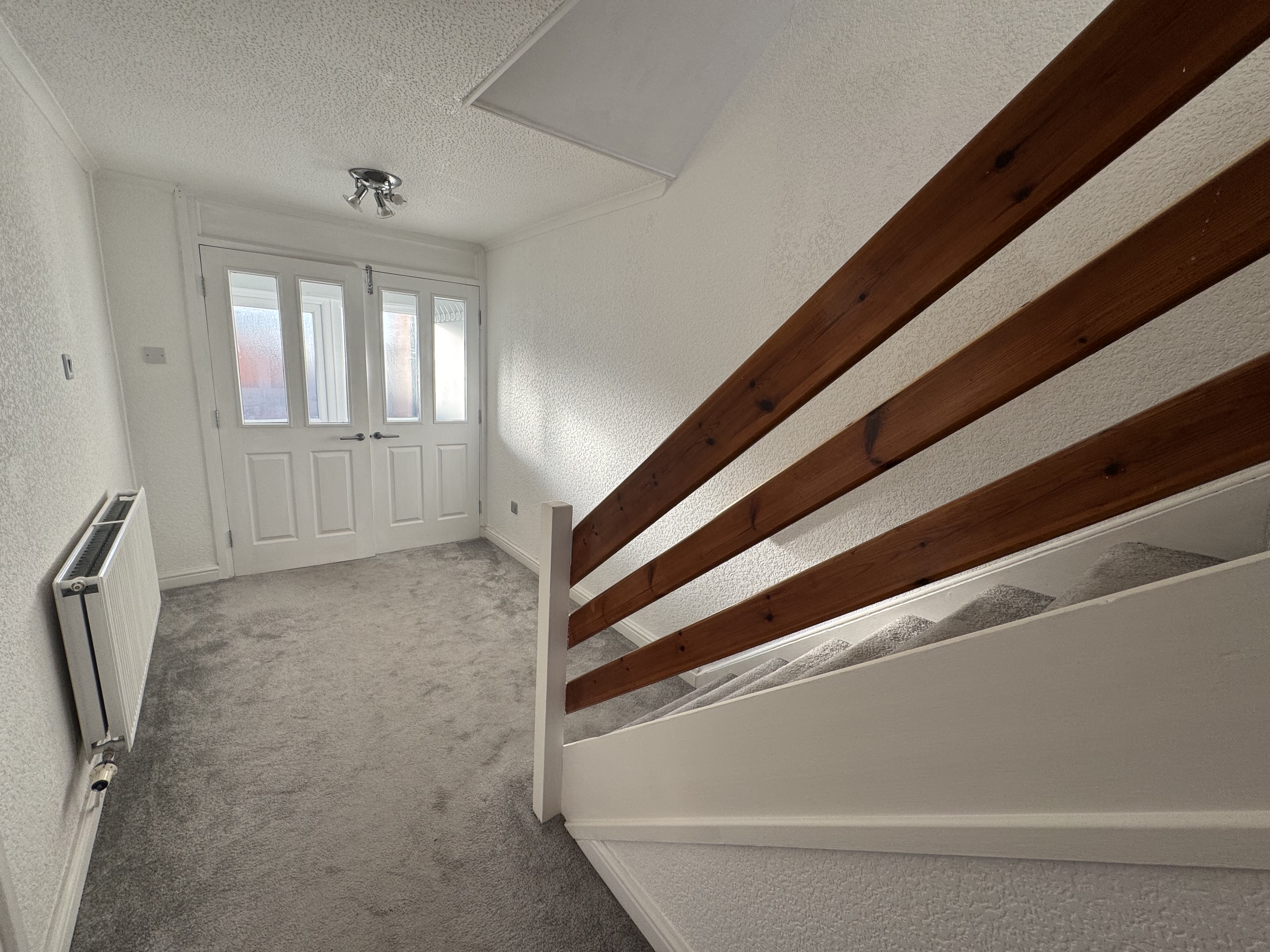 Entrance Hallway. Gas central heating radiator, stairs to first floor with walk in under stairs storage.