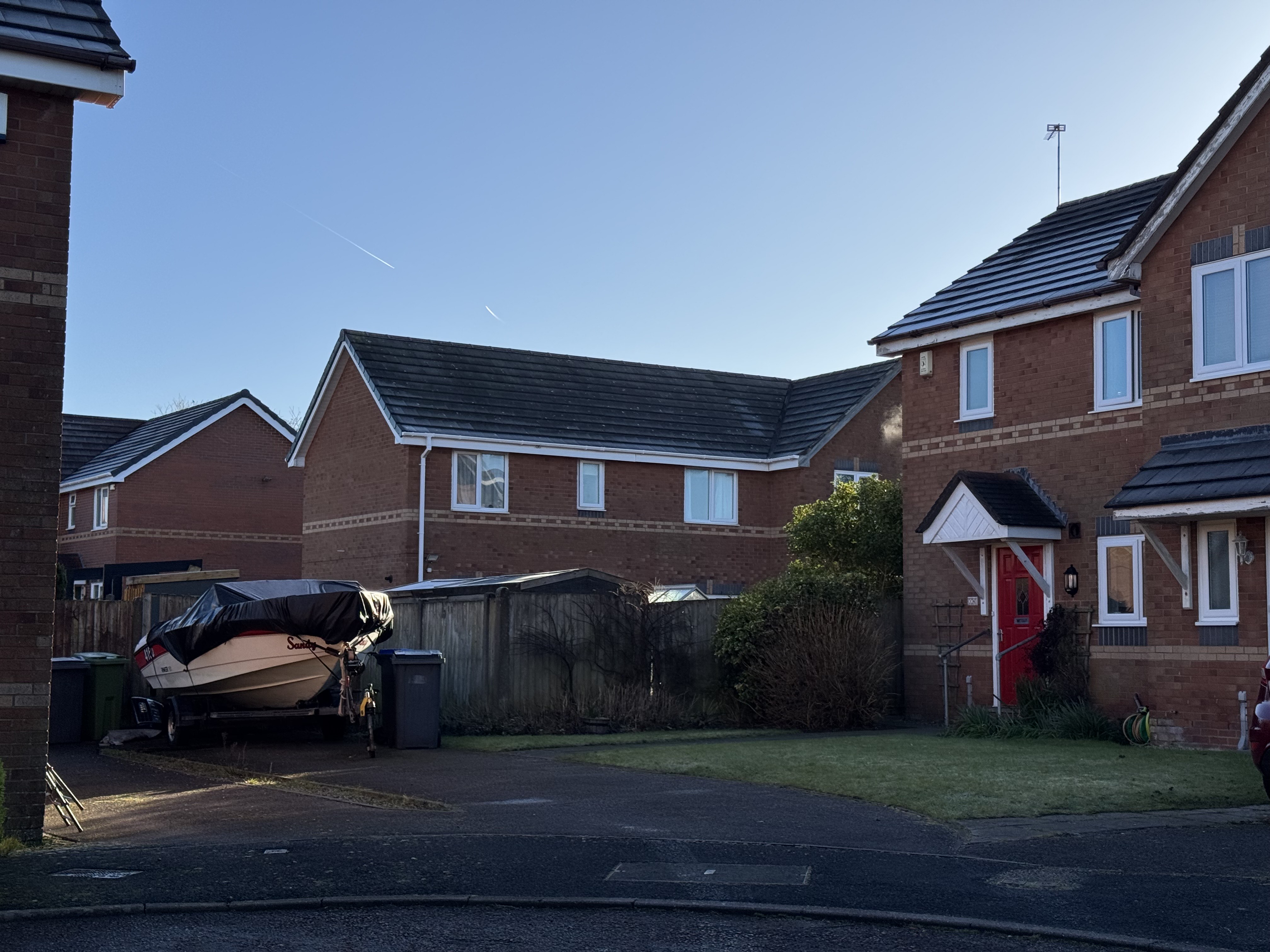 Driveway offering off road parking to front, lawned area, established borders, paved pathway to front and side.