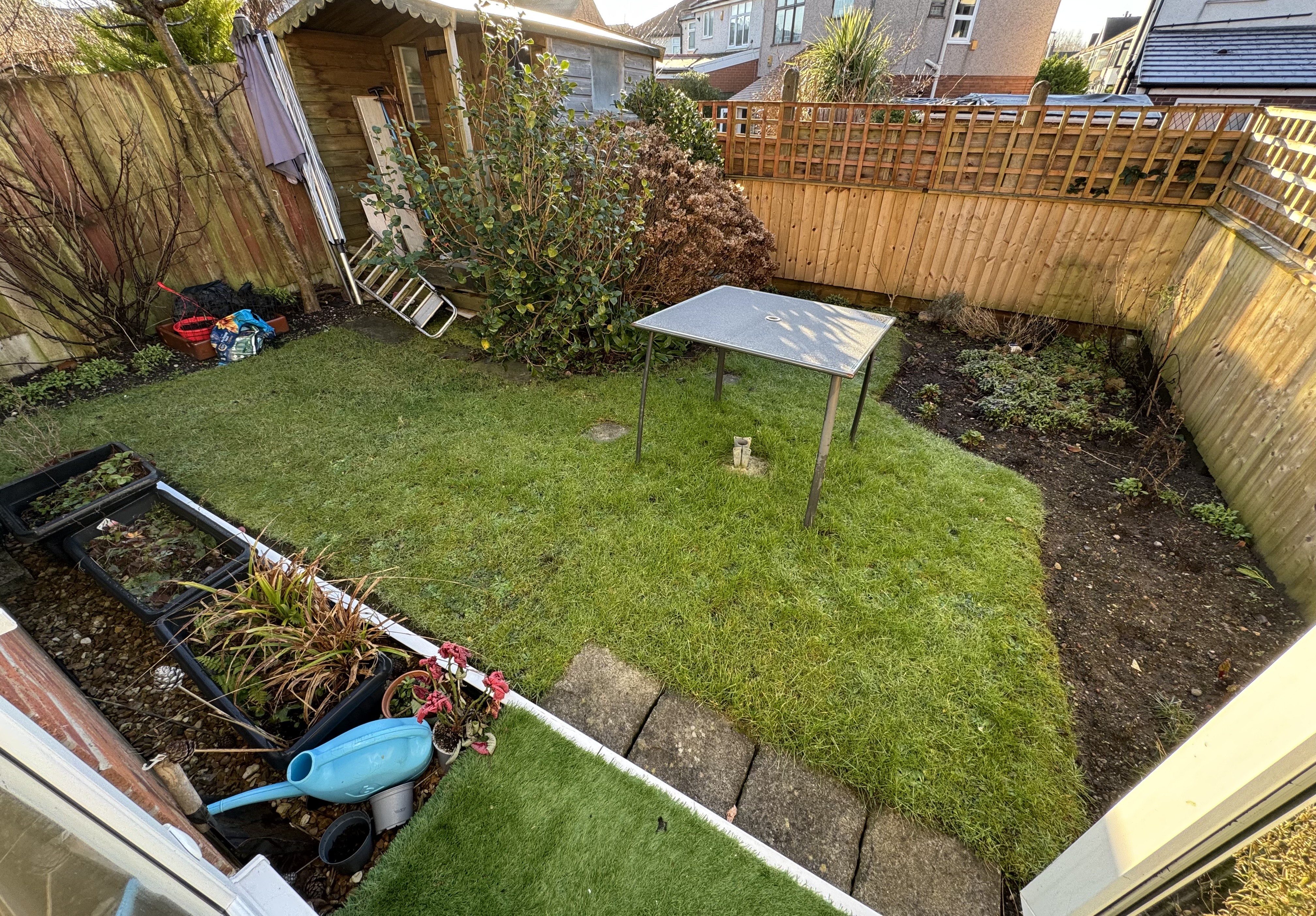 Enclosed south facing rear garden predominately lawned and borders.