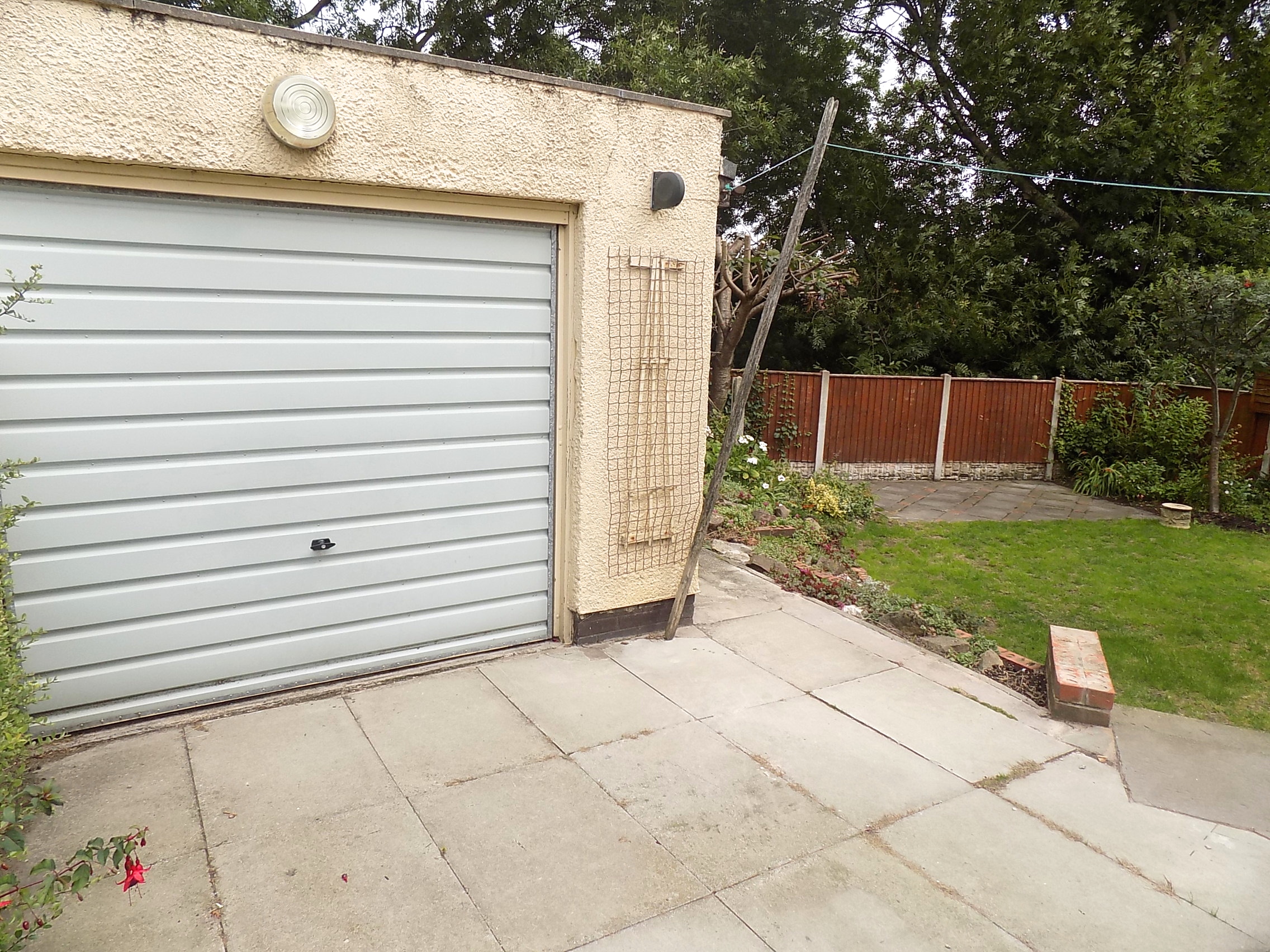Detached garage with up and over door and power and lighting laid on.