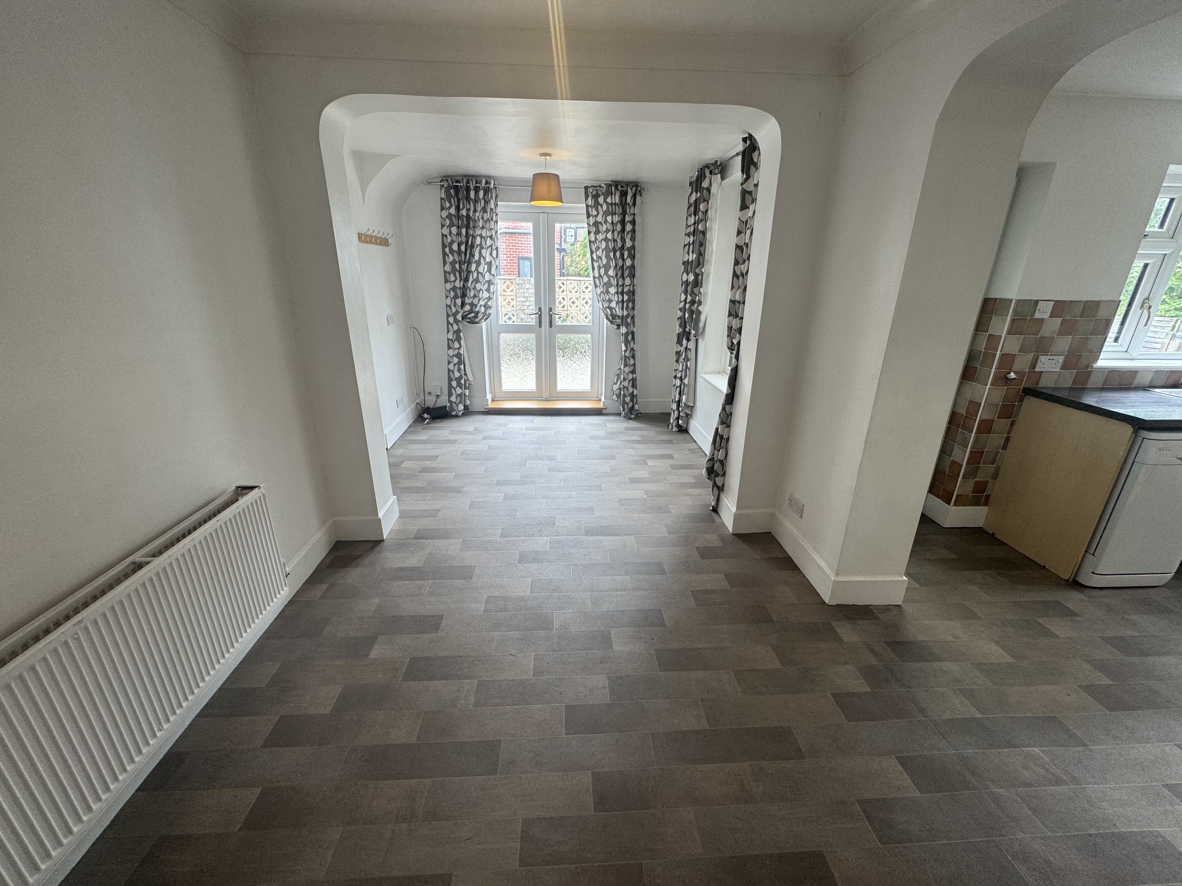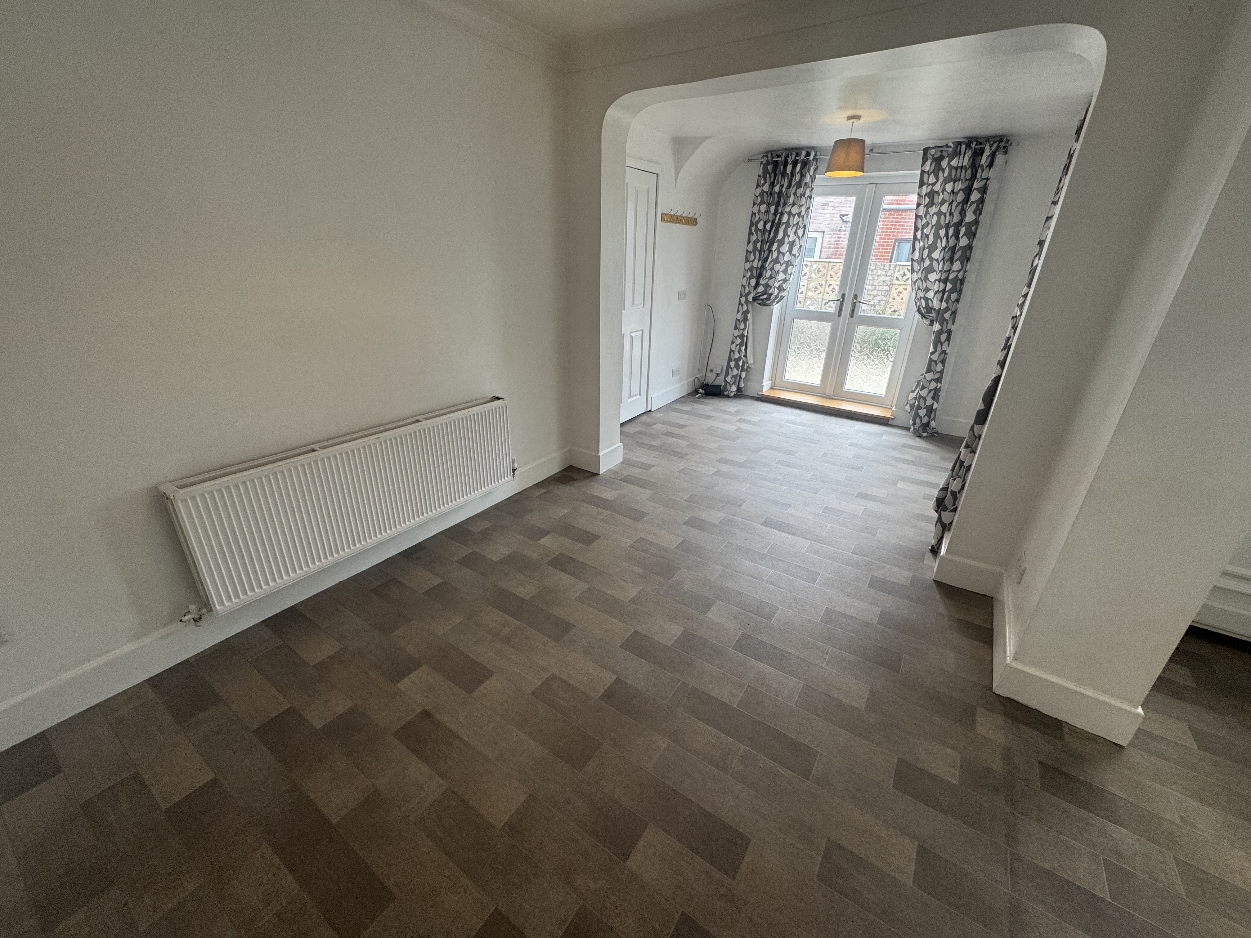 2nd Reception Room. 5.88m x 2.60m, UPVC Double glazed French doors to side, UPVC Double glazed window to rear porch, gas central heating radiator, open archway to kitchen.
