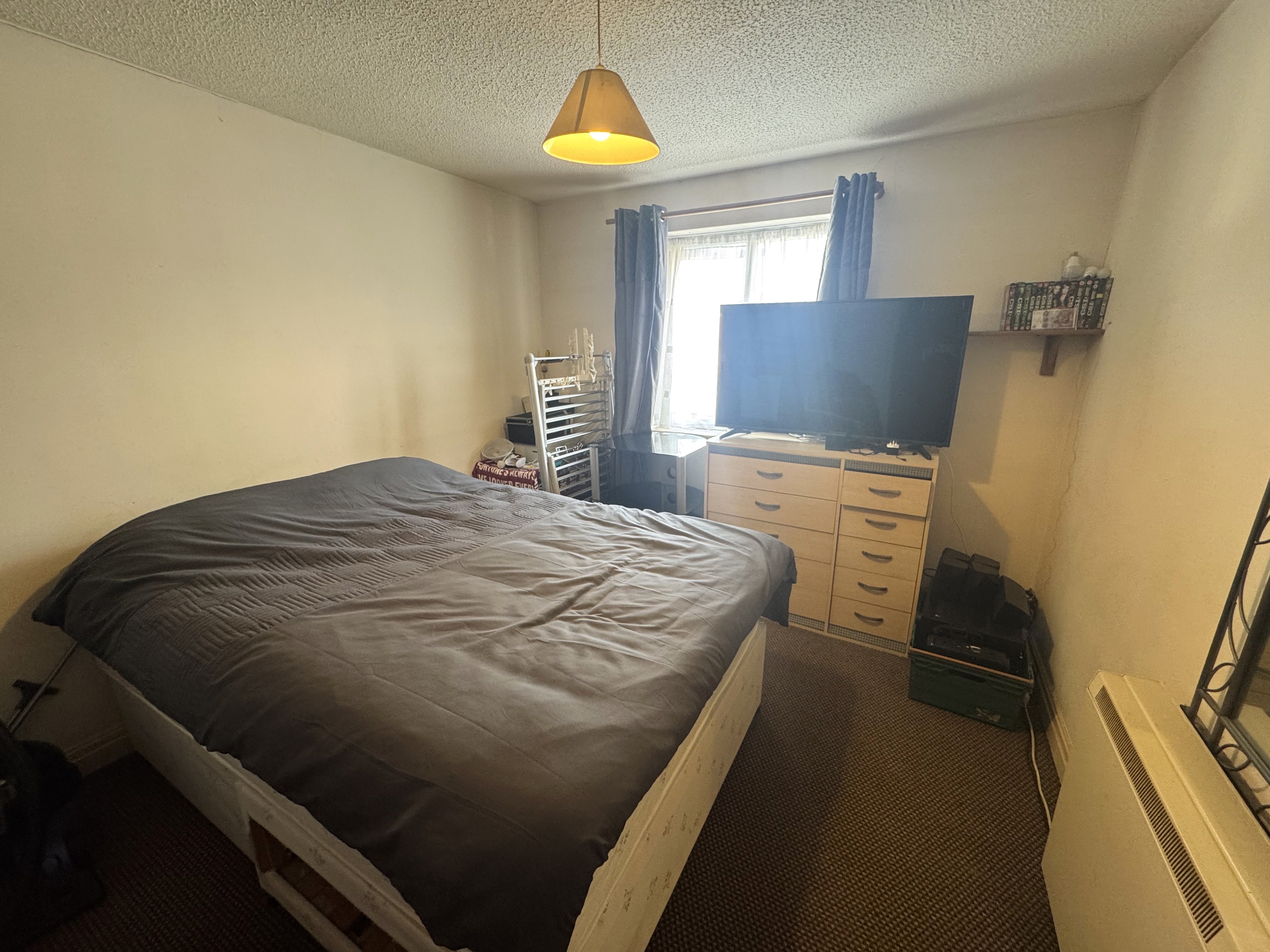 Bedroom. 3.50m x 3.00m, Double glazed window to front, storage heater.