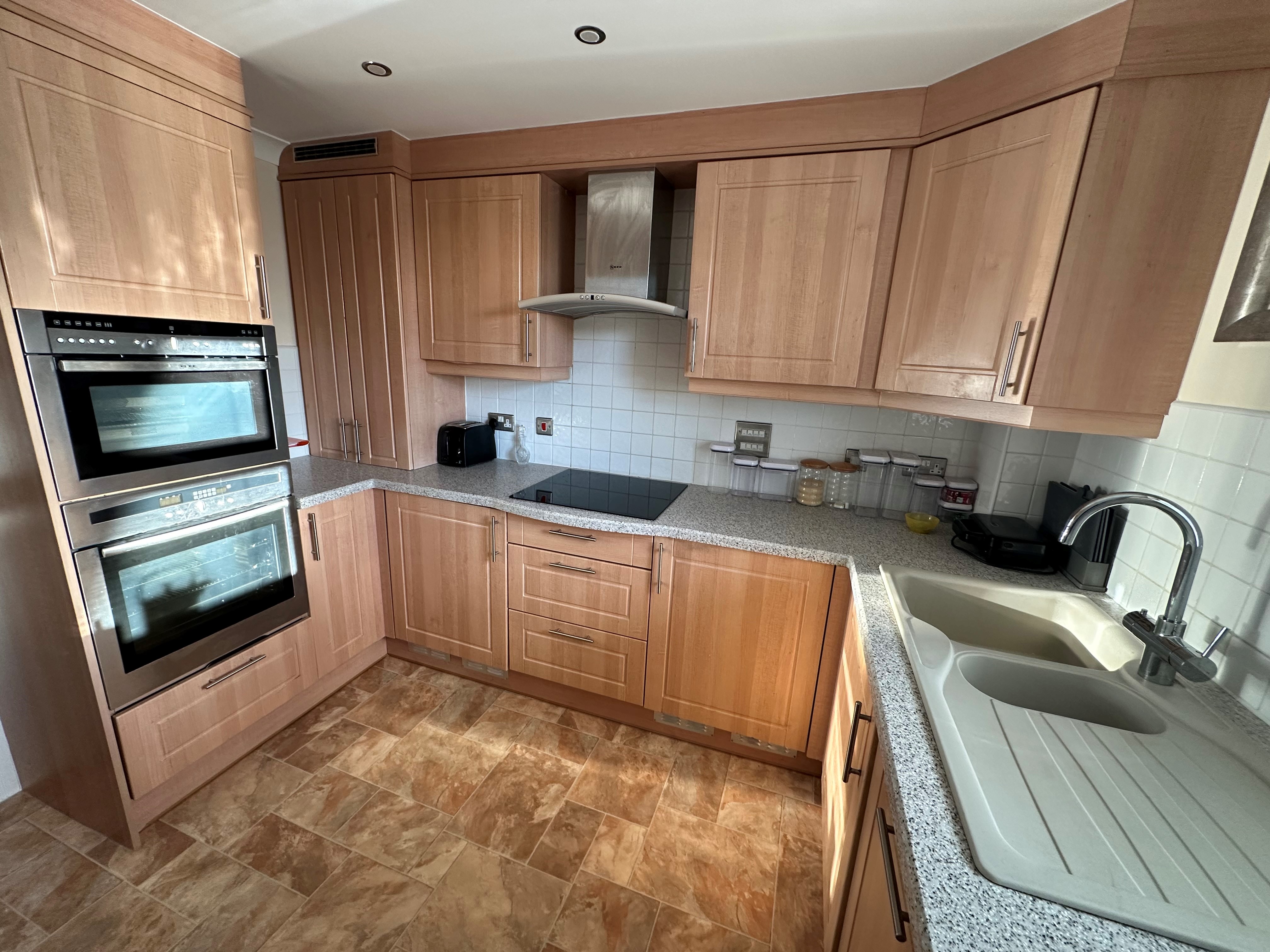 Dining Kitchen. 3.16m x 2.72m, UPVC Double glazed window to rear, range of modern wall and base units with complimentary worktops and breakfast bar, mid level oven and grill, electric hob, integrated fridge and freezer, dishwasher and washing machine.
