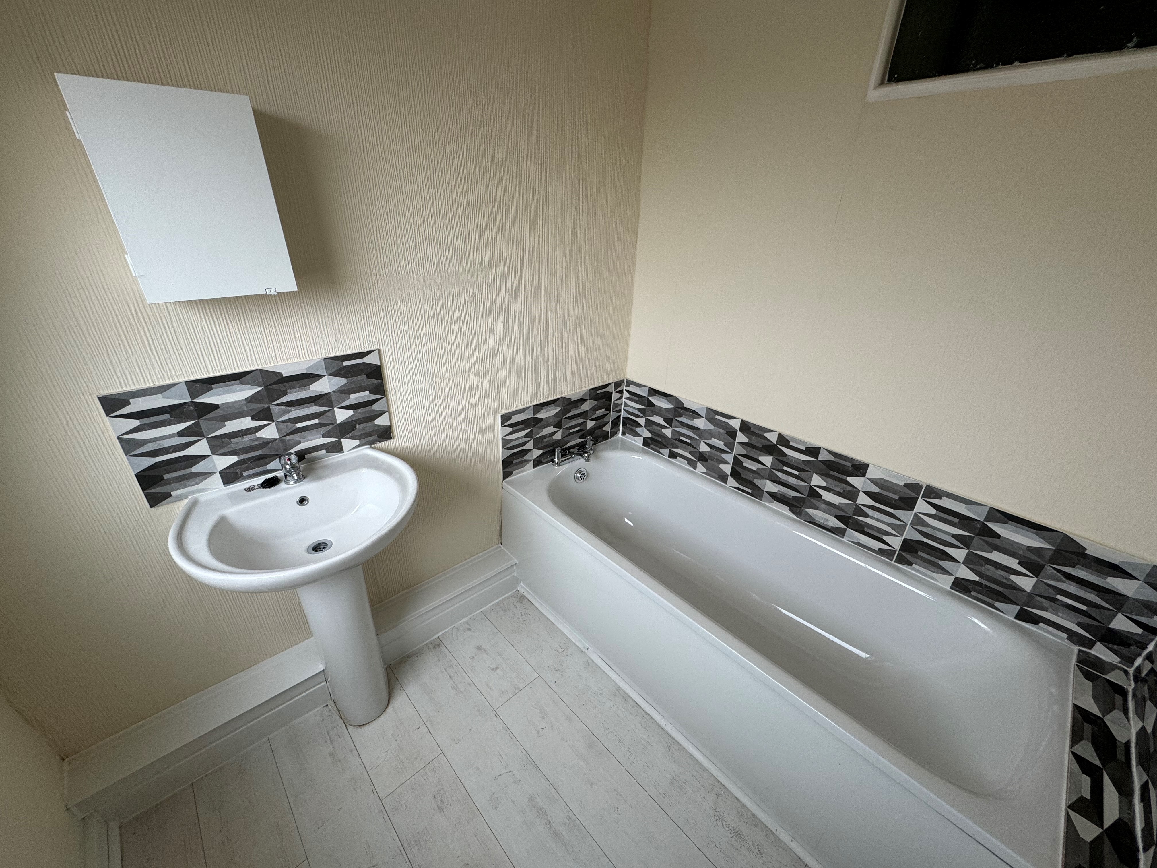 Bathroom. UPVC Double glazed window to rear, bath, wash hand basin.