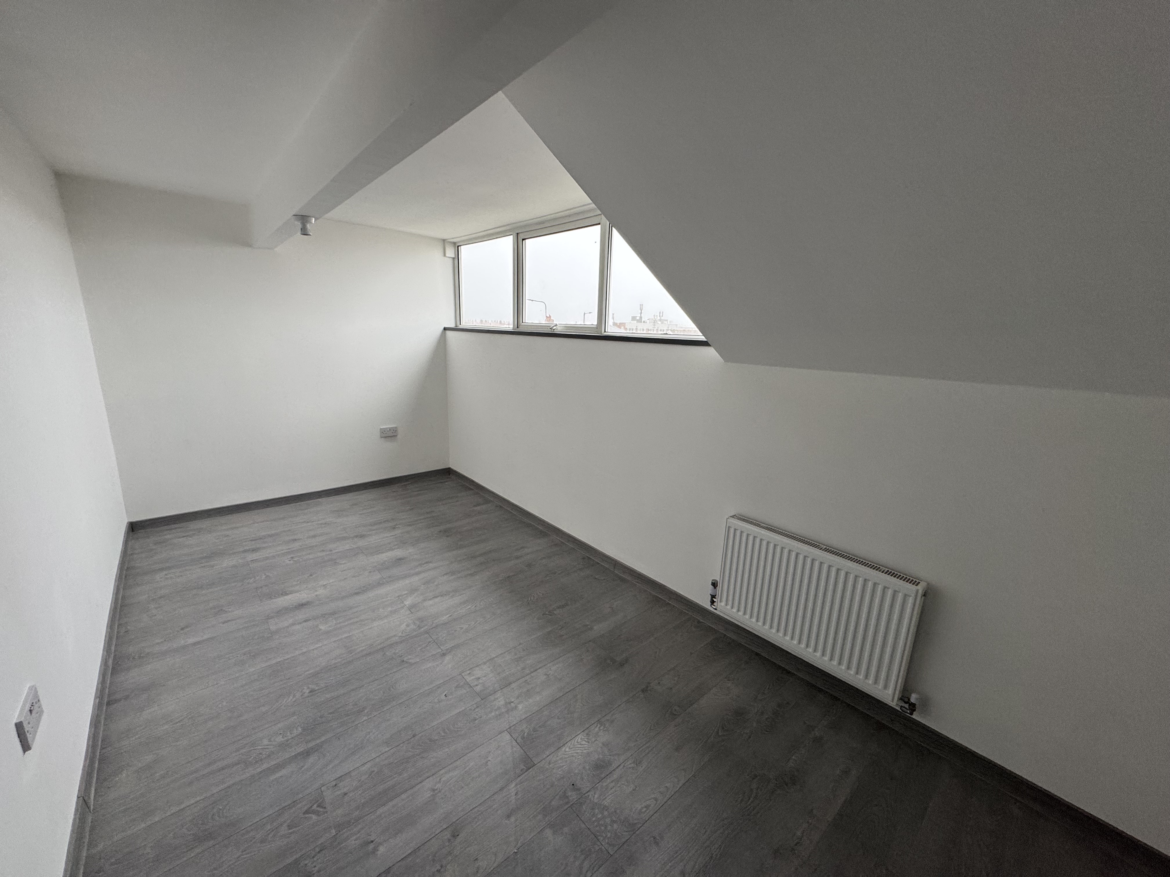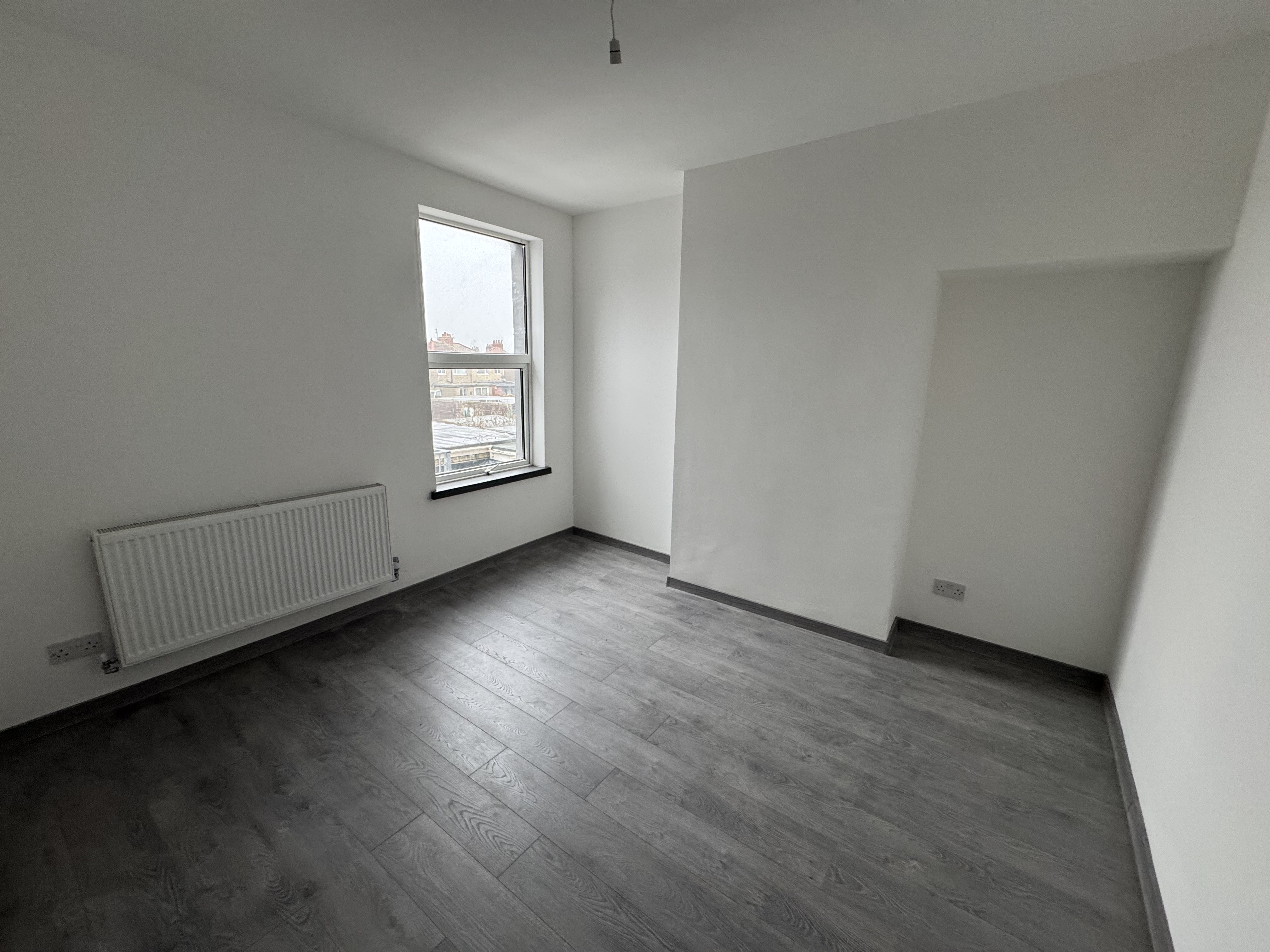 Bedroom 2. 4.93m x 2.38m, UPVC Double glazed window to front, gas central heated radiator, wood flooring.